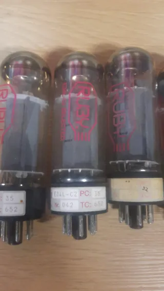 Lote de válvulas para amplificadores de guitarra. EL34. 40 9 Sovtek 3 Electro Harmmonix 1 Fender 2 Tad 5 Ruby 15 svetlania 1 Mesaboogie 2 el34? 2 jj 6L6. 20 6 Ultron 10 Mesa boogie 1 Svetlana 1 Engl 1 fender 1 tube amp dr. 2 6V6 mesa boogie ECC83....6 ECC82.... 1 EL84... 6 sovtek