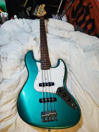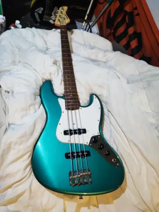 Bajo eléctrico Fender Squier Classic Vibe 60s "fenderizado" con modificaciones: - Sistema bodythrough (cuerdas pasantes) para mejor sustain y vibración. - Pastillas Fender Designed, sonido clásico Fender JB 60s - Switch pull/push para usar las pastillas en serie o paralelos (versatilidad y pegada). - Decal y placa trasera Fender (conserva No serie original). - Apantallado pintura carbono. - Cuerdas nuevas. - Color Daphne Blue muy guapo. - Acción baja, listo para tocar. Necesitaba un 2do bajo del nivel de mi JB USA, por eso las modificaciones. Vendo por exceso de material. (La pegatina de lagartija se despega fácilmente).