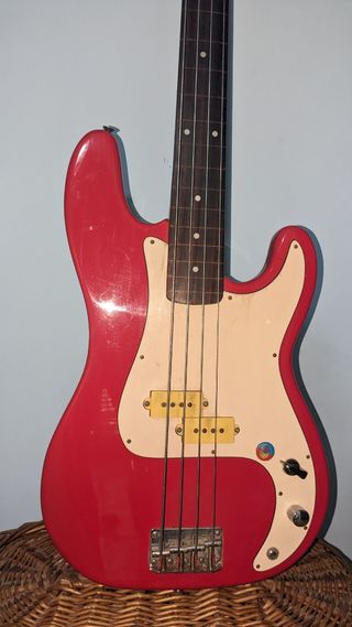 Fender Mustang Made in Japan de mediados de los 90, color Candy Apple Red con matching headstock original. Escala corta 24”, vibrato Dynamic Vibrato y pastillas single coil. Tiene una modificación reversible para poder seleccionar 3 posiciones de mic, sin cambio de fase. Necesita una limpieza/revisión de entrada de jack y potenciometros. Detalle estético en la parte baja del cuerpo (ver fotos) que no afecta al instrumento, hecho por el dueño anterior hace 8 años. Solo trato en mano.