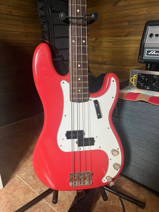 Vendo fender precision amercian original 50’s , Cuerpo de aliso con acabado de laca Pastillas Precision de bobina dividida Single Pure Vintage '58 Perfil grueso del mástil en forma de "C"; Diapasón con radio de 9,5 " Herrajes de estilo vintage; puente de cuatro caballetes Incluye estuche rígido de estilo vintage, tiene un desconche de la pintura en la parte tracera como un relic, lleva cuerdas flatwound , todo lo demas perfecto. solo recogida en mano. no hago envios. puedo llevar a Madrid . Valoro cambio por bajos de 5 cuerdas , Fender jazz Bass , stingray , Lakland, sadowsky.