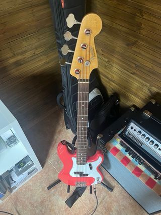 saludos vendo este difícil de conseguir precision de lakland modelo donald duck dunn precision con mastil jazz sonando increible , ligero lleva preamp j retro que es una maravilla con bateria recargable, funciona en pasivo igual incluyo los potes y estuche no original. Un Mustang jmj o de una sola pastilla podría entrar....