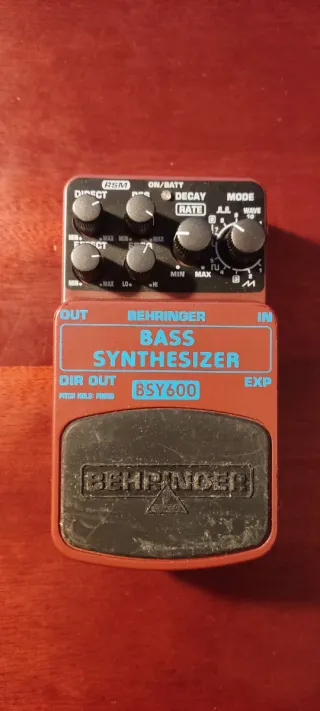Pedal Behringer BSY600 para bajo, modelo Bass Synthesizer. - Color rojo. - Controles de Decay, Rate y Mode. - Conexiones Out, In, Dir Out y Exp. - No incluye caja. - Con alguna marca de uso, ver fotos. NO REGATEOS
