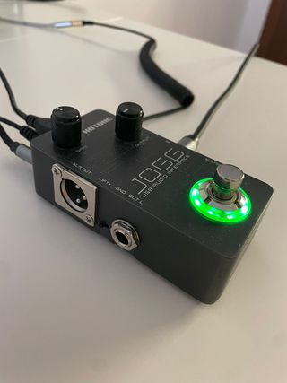 Hotone JOGG pedal-interfaz de audio USB para guitarra y bajo. Como nuevo, solo usado en casa. Conversión 24-bit / 44.1–48 kHz, sonido muy limpio y sin latencia apreciable. Entrada Hi-Z, salidas jack L/R y XLR balanceada, salida de auriculares y aux in. Formato de pedal compacto, ideal tanto para grabar como para directos. Solo envíos.