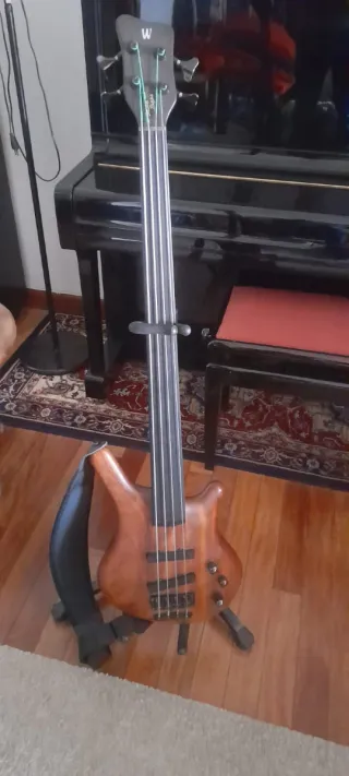 Bajo Warwick Rockbass de 5 cuerdas, modelo sin trastes.