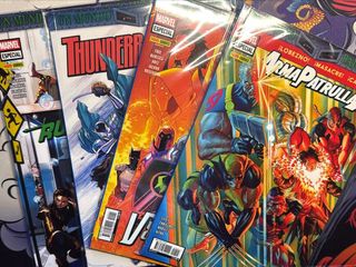 💀 Contiene los números especiales de Un Mundo Bajo Muerte: THUNDERBOLTS, RUNAWAYS, VENGADORES SUPERIORES y ARMA PATRULLA-X 📯Envío únicamente por Correos o InPost 📖 Estado: Como nuevos, guardados en funda en perfectas condiciones.