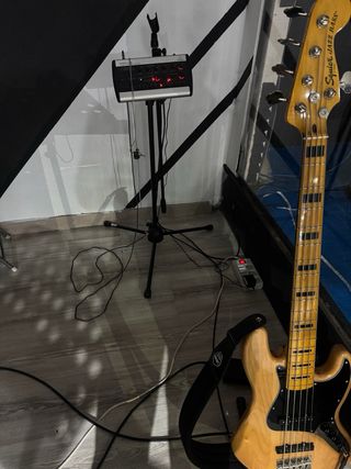 Pedal multiefectos Tech 21 Bass Fly Rig v2 para bajo. Es una pedalera analógica. Tiene sección de efectos, afinador, compresor, y una pequeña sección SansAmp con dos canales. Tiene dos salidas jack (una de ellas correspondiente al FxLoop), y una salida XLR. Esto, unido a su tamaño reducido, lo robusta que es, y lo contundente que suena hace que pueda ser el motor principal del sonido del bajo sin ningún problema. Ha sido mi fuente principal de sonido durante un par de años. Es muy polivalente.