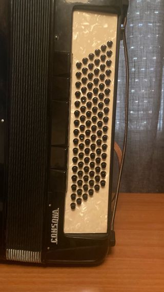 Acordeón Weltmeister Consona en color negro, lo adquiri en una temporada que tenia curiosidad por aprender a tocar, pero vendo por no darle uso actualmente. El acordeón tiene sus años, pero buen sonido y funcionamiento mecánico, siendo necesario unicamente cambiarle las correas de sujección. - Teclado piano - 96 bajos -Incluye funda color negro