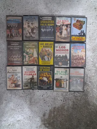 Lote de 12 casetes de Carnaval de Cádiz Izquierdo - Los Tontos del Pueblo - Los Caballitos que Suben y Bajan - Comparsa Gaditana Andaluces por el Mundo - La Boda del Siglo - Los Corsarios - Charlatanes de Feria - Mario Carmelo y sus Muñecos - Las Abejas de Ruinasa - Los Monos Sinverguenzas - Los Cholos del Altiplano - Los Fanfarrones de Cai - Quince Piedras 4€ Cada Una