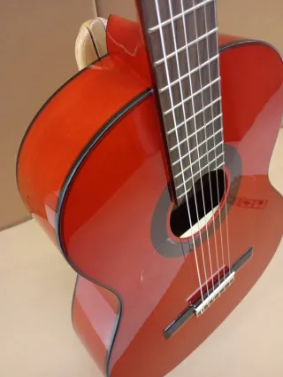 Guitarra flamenca de Guitarras Caro modelo FL16 con un llamativo acabado en color rojo. Su construcción con tapa de pino y en ciprés laminado le confiere un sonido característico - Color rojo brillante. - Diseño flamenco tradicional. - Golpeador transparente. - Acción baja. Enviamos a toda España a través de transporte urgente o Wallapop