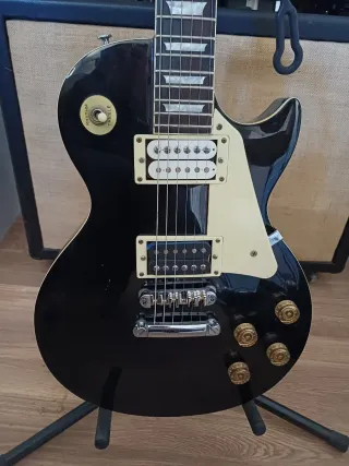 Les Paul con tapa arqueada y mástil encolado. Pala con open book tipo Gibson. Puente roller. Acción baja y cómoda de tocar. Parece construida como una auténtica Les Paul, una base en el cuerpo de una madera y una tapa de 15 mm de grosor de otra madera. La guitarra obviamente no es una Gibson pero suena bastante bien y se toca muy bien, además de la estética tan similar a la que imita.