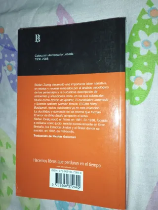 Libro del maestro austriaco Stefan Zweig Editorial Losada Colección 70 aniversario Subo novedades todas las semanas 🔝 Guárdame en favoritos 🙂 📦 Hago lote para ahorro en envío. 📚 muchos más libros en mi perfil. 🌎Hago envío wallapop y entrego en mano en Elche Crevillente Vega baja Albatera Anagrama, Austral, Cátedra, DEBOLSillO, alianza editorial, edimat, Plutón, Valdemar, akal, penguin clásicos, rialp, siruela, Acantilado Edgar allan Poe Lovecraft Stephen King Philip K Dick Unamuno stevenson Borges Chéjov Vargas Llosa camus Pío Baroja Clarín dostoievski Tolstói Kafka