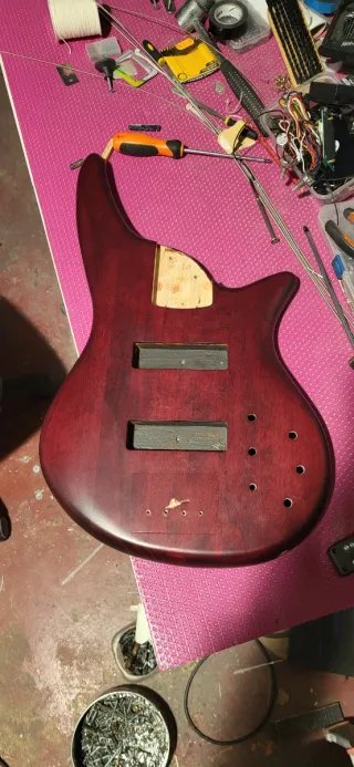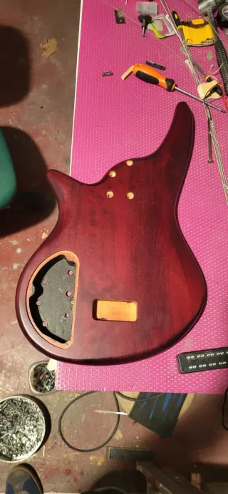 Cuerpo de bajo Jackson Spectra JS3V en acabado rojo oscuro. Listo para montar. - Diseño ergonómico. - Dos cavidades para pastillas. - Múltiples orificios para componentes. También vendo las dos pastillas y el puente.