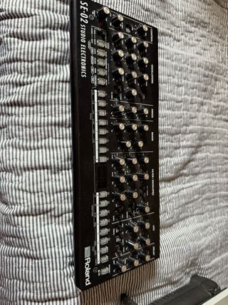 Sintetizador Roland SE-02 Studio Electronics en color negro. Diseñado para la creación de sonidos. Sonido potente, ideal para bajos y leads. Muy buen estado y totalmente funcional. Incluye fuente de alimentación. - Controles de Control, Oscillators, Xmod, Mixer, Filter/Envelopes, LFO, Delay. - Botones de Gate, Pr-Patch-In, Edit, Scale, Step, Direction, Pam Perform.