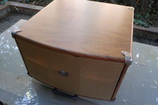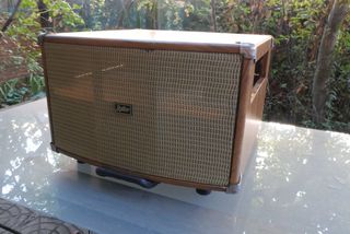 Leslie 2102. Igual al 2101 pero con mueble diferente. Tiene la bocina giratoria, 2 woofer de 6 pulgadas y 2 tweeters. Suena muy bien. Posibilidad de linkearlo a un ampli de bajo para tener más grave. Lo forre de vinilo estilo madera y forré la rejilla original con una de color beige como se puede ver en las fotos. También le puse unas ruedas y un mango telescopico tipo maleta. Muy cómodo de llevar