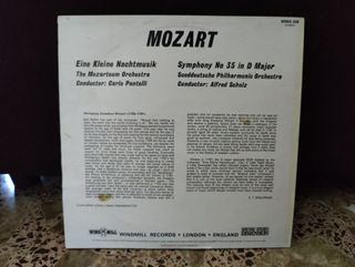 Disco de vinilo con Eine Kleine Nachtmusik de Mozart, interpretada por The Mozarteum Orchestra bajo la dirección de Carlo Pantelli. Incluye también la Symphony No. 35 in D Major con la Sueddeutsche Philharmonic Orchestra y Alfred Scholz como director. - Eine Kleine Nachtmusik por The Mozarteum Orchestra, Conductor: Carlo Pantelli. - Symphony No. 35 in D Major por Sueddeutsche Philharmonic Orchestra, Conductor: Alfred Scholz. - Formato: Vinilo. - Dimensiones Spectro-Stereo. COMPRA MÍNIMA PARA REALIZAR ENVÍOS WALLAPOP DE 50 EUROS, IMPORTES INFERIORES MEDIANTE BIZUM O TRANSFERENCIA Más vinilos en mi perfil