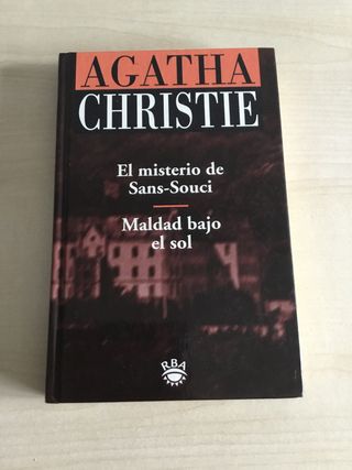 Libro de Agatha Christie titulado El misterio de Sans-Souci y Maldad bajo el sol. Tiene un escrito en la primera pagina. Las paginas han amarilleado un poco con el paso del tiempo. Las dos o tres primeras paginas estan un poco desenganchadas de la cubierta principal ( ver foto).