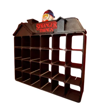 Expositores 3D de los funkos de Kinder Joy de Stranger Things inspirado en la formas del tejado de la casa de Vecina. Pensado para 24 figuras colccionables. Envios a toda España. Se fabrican bajo pedido. #strangerthings
