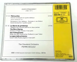 Este CD incluye Le Sacre du Printemps y Pétrouchka de Igor Stravinsky, interpretados por The Cleveland Orchestra bajo la dirección de Pierre Boulez. - Grabación digital. - Edición Deutsche Grammophon.
