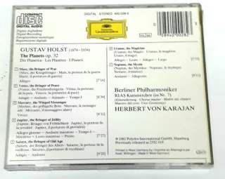 The Planets de Gustav Holst, interpretada por la Berliner Philharmoniker bajo la dirección de Herbert von Karajan. - Sello discográfico: Deutsche Grammophon. - Grabación digital. - Referencia: STEREO 460 028-2.