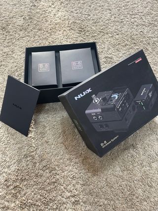 Sistema inalámbrico NUX B8 para guitarra y bajo. Incluye transmisor y receptor. - Diseño compacto y profesional. - Indicadores LED de estado. - Conexiones de audio versátiles.