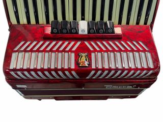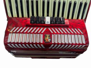 Acordeón Parrot original en color rojo nacarado. Instrumento clásico, completo y bien conservado. Características: • Marca: Parrot • Teclado piano • Botonera de bajos completa • Registros funcionales • Incluye correas originales Estado: Buen estado general para su edad. Las correas originales están funcionales, pero el recubrimiento de cuero está pelado por el paso del tiempo (ver fotos). El instrumento no presenta roturas visibles. Ideal para músicos, coleccionistas o restauración ligera. 📍 Entrega en mano o envío 💬 Cualquier duda, pregunta sin compromiso Precio: 350 € (negociable)
