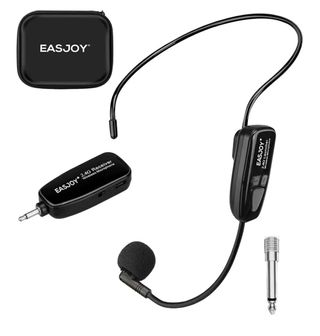 Sistema de micrófono inalámbrico Easjoy WM01. - Incluye estuche de transporte. - Receptor 2.4G. - Transmisor 2.4G. - Adaptador de 3.5mm. El micrófono inalámbrico WM01 está diseñado con la tecnología inalámbrica 2.4G más avanzada. El micrófono inalámbrico de los auriculares se conecta automáticamente cuando se enciende. Con baja radiación, baja interferencia, alta estabilidad de la señal, transmisión rápida, retrasos cortos de audio. La frecuencia del micrófono inalámbrico proporciona confidencialidad, capacidad anti-interferencias y sonido alto, claro y de alta fidelidad.