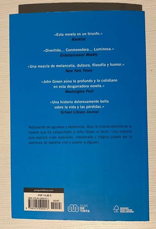Bajo la misma estrella es un libro de romance y de superación. Muy recomendado para un público joven, es una novela muy emotiva. Este ejemplar está en perfectas condiciones, se aprecia algún defecto en la cubierta, pero el interior está intacto