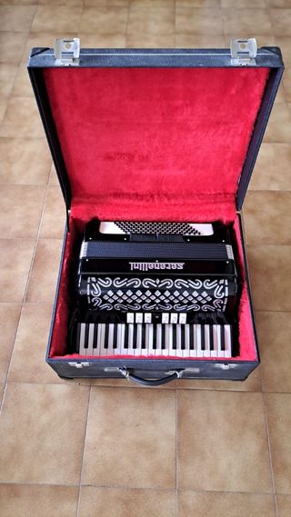 Se vende acordeón Serenellini con 96 bajos, como nueva. Se vende con su caja. He sacado foto de todas las teclas y bajos (si quereis más fotos o vídeo os puedo mandar al whatsapp). No tiene nada de óxido y nada de humedad porque se ha guardado siempre en su caja y en buenas condiciones de humedad relativa. Está como nueva.