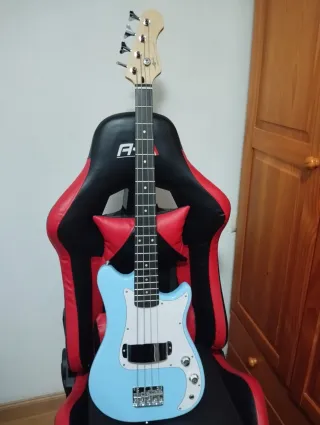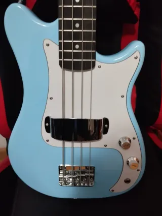 Bajo eléctrico de escala corta, mantenimiento y ajustes hechos recientemente, cuerdas d addario. Ideal para iniciarse o para quienes buscan un instrumento más manejable.... Incluye funda super acolchado y correa. Tacto y sonido que sorprenden realmente...