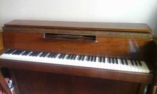 Piano vertical de la reconocida marca Gaveau, fabricado en París. - Diseño clásico en madera. - Teclas de marfil y ébano.