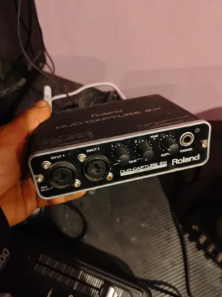 Interfaz de audio Roland DUO-CAPTURE EX. Muy buen estado, funcionando. Dos previos VS con soporte phantom-power • Compatible con PC, Mac y iPad* • Tres formas distintas de alimentación de bajo ruido; puerto USB, dos pilas AA o adaptador AC • Caja compacta de aluminio duradera • Entrada Hi-Z para conectar una guitarra o un bajo eléctrico • Entrada y salida Midi