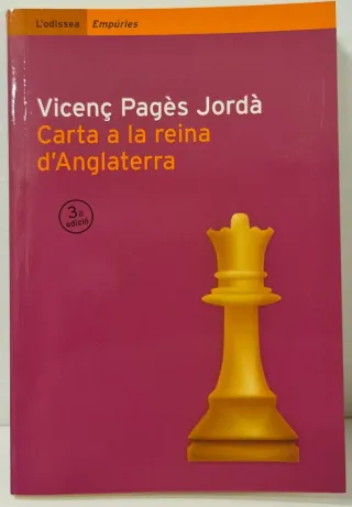 Autor: Vicenç Pagès Títol: Carta a la reina d'Anglaterra Editorial Empúries Idioma: català NOU, per estrenar. Detall i ressenya a les fotos. Altres llibres i articles interessants al meu perfil #Llibre #volum #cultura #llengua #empuries #català #assaig #història #Catalunya #saramago #premi #edicions62 #novel.la #editorial #biblioteca, llibreria, ressenya, #filologia #literatura, investigació, universitat, estudi. #Libro, leer, texto, clase, tesis #novela. (1103/26)