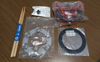 Lote de artículos de percusión y batería, SIN ESTRENAR. Precio por el lote. - Un par de Baquetas de madera marca CASCHA, modelo 5A. - Pandereta roja con soporte para batería. - Pandereta circular de silicona con sonajas para charles. - Anillo negro de protección agujero bombo, adhesivo. - 1 protector plástico para platillos. *TODO SIN ESTRENAR, EN SU EMBALAJE ORIGINAL* Hago envío a cargo del comprador, incluso wallapop o bizum. También atiendo whassap 699 05 93 86. Caja tambor cencerro soporte baquetas batería percusión timbal platillos bombo orquesta música instrumentos pedal