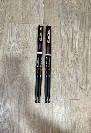 Par de baquetas de la marca Ahead, modelo 5A. Nuevas, sin estrenar. - Material: Aluminio/Fibra - Acabado: Negro - Bellota: Nylon