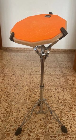 Pad de práctica para batería de la marca SLINT. Ideal para ensayos silenciosos. Alta calidad y con poquísimo uso. El lado principal cuenta con una goma elástica natural de alta densidad no tóxica, ligeramente texturizada que ofrece la sensación de un tambor real cuando se utiliza. La parte posterior está equipada con una goma más suave que proporciona una superficie de menor rebote. Los lados del tambor están montados en un marco de madera robusto de alta calidad, creado para ofrecer una experiencia fantástica. El paquete incluye una almohadilla de práctica premium, juego de baquetas 5A y cada cosa con su bolsa de almacenamiento.