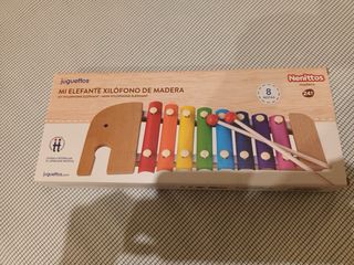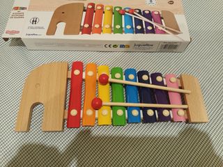 Xilófono infantil con forma de elefante de madera de la marca Nenittos. Sin estrenar - 8 notas musicales. - Incluye dos baquetas de madera con bola roja. - Ideal para estimular el lenguaje musical.