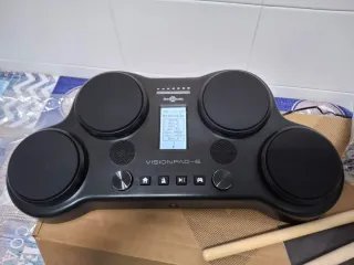 Batería electrónica de sobremesa Gear4music VISIONPAD-6. - Diseño compacto y portátil. - Pantalla LCD para ajustes. - Pads sensibles al tacto. -25 juegos musicales integrados Incluye baquetas, pedales,cascos y taburete.