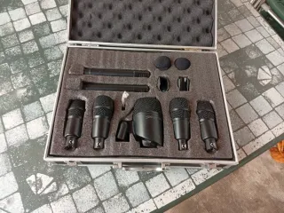 Se vende kit de micrófonos para batería, ideal para capturar un sonido potente y detallado. Incluye todos los accesorios necesarios para su montaje y uso. - Estuche rígido con interior acolchado. - Varios micrófonos dinámicos. - Soportes y adaptadores. - Filtros antiviento.
