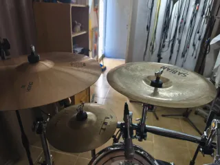 Dos baterias, microfonia, platos Paiste y Avedis.