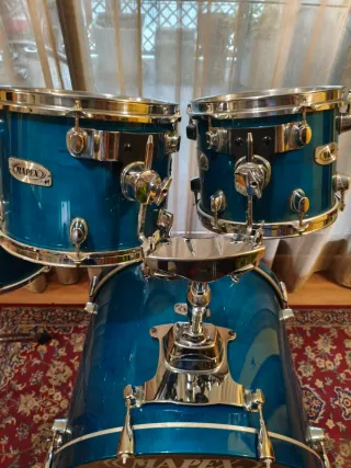 Juego de cascos de tres piezas. Bombo 20x14 Tom 12x8 Floor tom 14x12 Madera de haya alemana Incluye abrazadera de tom tradicional, con pinza. Fundas Hardcases incluidas. Es la de la última foto. Ha salido del local de ensayo únicamente dos veces, para ir a estudio y a plató. Ahora la tengo con un parche Evans 20'' EMAD2 Clear en el bombo, y dos remo emperor de dos capas en los toms. Conservo todos los parches originales sin uso. sonor/zildjian/tama/mapex/paiste/pdp/premier/Ludwig/gretch/meinl/vintage/