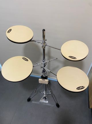Kit de práctica silenciosa DW en muy buen estado, ideal para practicar en casa sin molestar. Completo salvo bolsa y caja. Uso doméstico y bien cuidado. Marca profesional DW (Drum Workshop) Rebote realista y muy silencioso Compacto y fácil de montar Batería sorda / práctica 5 pads con soporte Pads: 2×8", 2×10", 1 bombo Material: goma