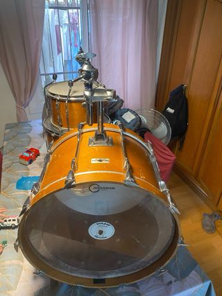 Batería Yamaha Beech Custom del año 1988, mes octubre. Un set clásico con un sonido distintivo. - Medidas: Bombo : 20x17 Timbales: 10x9 12x10 14×12 - Modelo: Beech Custom.( Haya) - Año de fabricación: 1988. Japonesa - Acabado rojo brillante.(Red apple) - Una joya de batería, sonido potente. - Se entrega con el herraje de la foto, solo que con más años. Los Herrajes para sujetar los timbales hay dos largos y uno corto. - Se entrega en mano en León. - Set de batería pesado.