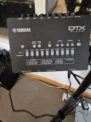 Batería electrónica Yamaha DTX con módulo de sonido y pads. - Módulo de sonido Yamaha DTX. - Pads de batería y platillos. - Pedal de bombo. - Auriculares. - Alfombrilla para batería. -baquetas - taburete itama En muy buen estado casi no usada