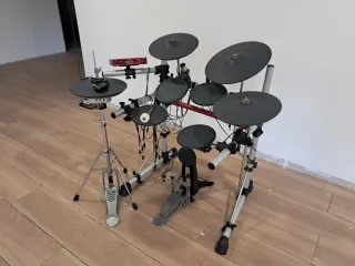 Vendo batería electrónica Yamaha DTX450K en buen estado de funcionamiento. Kit completo y listo para tocar. Incluye todo lo que se ve en las fotos: - Módulo DTX (DTX Drums) con kits y metrónomo integrado -3 pads de tom + snare pad - Hi-hat pad + pedal hi-hat - 2 pads de platillo (crash/ride) - Pad de bombo + pedal de bombo Yamaha - Rack completo con todos los cables - Amplificador de monitor Roland PM-03 - Taburete de batería - Baquetas Promark - Auriculares LD Systems (las almohadillas están desgastadas, se indica en el precio) Ideal para practicar en casa sin molestar a los vecinos. Uso doméstico, funciona perfectamente.