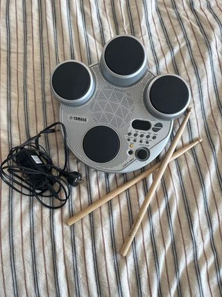 Batería electrónica Yamaha DD-45 con baquetas y adaptador. - Diseño compacto y portátil. - Superficie de percusión. - Controles de volumen y selección de sonido. - Conexión por cable y con pilas. - funciona perfectamente. - Con pistas, efectos, entradas auxiliares, microfono...
