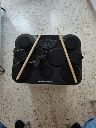 Batería electrónica Millenium Rookie Vendo batería electrónica Millenium Rookie, como nueva. La usé muy poco y por poco tiempo; lleva casi un año guardada sin uso. La compré por 179 € y la vendo por 110 €. Es ideal para casa: ocupa poco espacio, se puede tocar con auriculares y practicar tranquilamente sin molestar a los vecinos. Muy cómoda para practicar y disfrutar. Tiene varios sonidos y ritmos, metrónomo y todo lo necesario para empezar a tocar. Los pads son de malla y se siente muy bien al tocar. A mí me dio mucho disfrute y me gustaría que la compre alguien que realmente la vaya a disfrutar 🥁