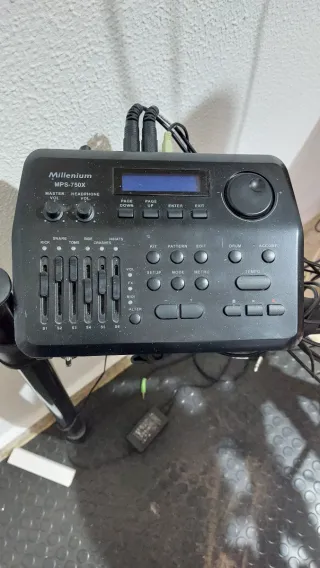 Batería electrónica Millenium MPS-750X en perfecto estado, se vende por falta de uso, tiene un año y apenas se ha usado. - Pads de bombo, caja y toms. - Platillos. - Soporte. - Pedal de bombo. - 2 juegos de baquetas - Alfombra - Banqueta