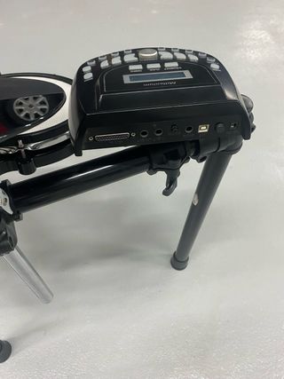 Batería electrónica Millenium MPS 250. - Módulos de sonido y pads. - Soporte y pedales incluidos. - Diseño compacto y moderno. Todas las piezas en buen estado excepto un agarre que está algo desgastado.