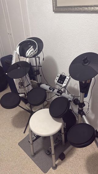 Batería electrónica Millenium usada muy poco y en perfecto estado. Incluye cajas originales, (instrucciones) y cascos originales. El altavoz se vende y se negocia el precio aparte. La banqueta original va incluida en el precio, pero se vende aparte ya que es otra caja