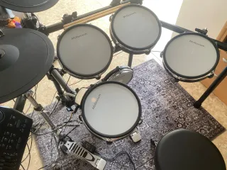 Batería electrónica Roland TD-1K en buen estado. Ideal para practicar en casa. - Módulos de sonido. - Pads de batería. - Platillos. En caja original, se regalan baquetas. Pedal, Tom, batería, electrónica, eléctrica, plato, Crash, caja, bombo, hi-hat, Roland, Millenium, Yamaha, Alesis, Carlsbro, Oqan, módulo, rack, splash, regalo, gratis, navidad